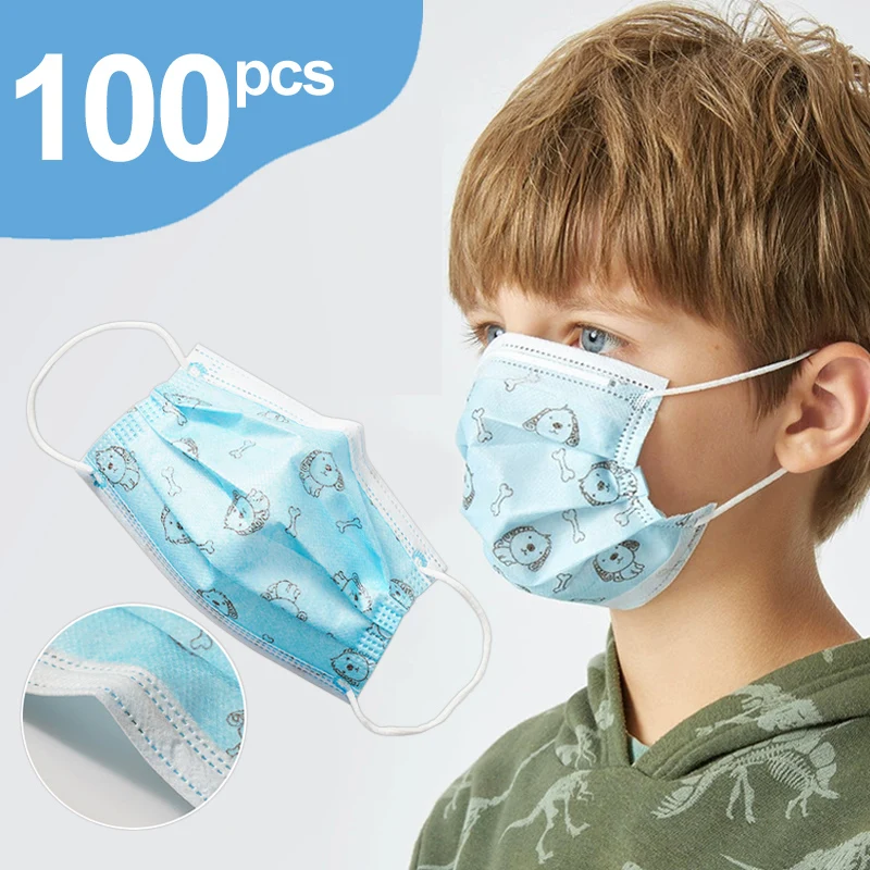 10/50/100Pcs Child Kids Disposable Face Masks 3 Layer Anti-Dust Pollution Masks Fabric Meltblown Dustproof Cartoon Dog Cat Mask