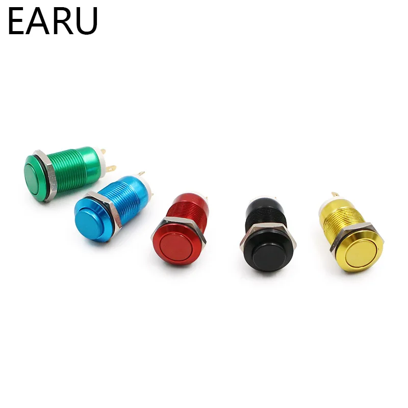 12mm Oxide Aluminium Red Blue Green Black Yellow Waterproof Metal Push Button Switch High Flat Head Momentary Fixation Latching