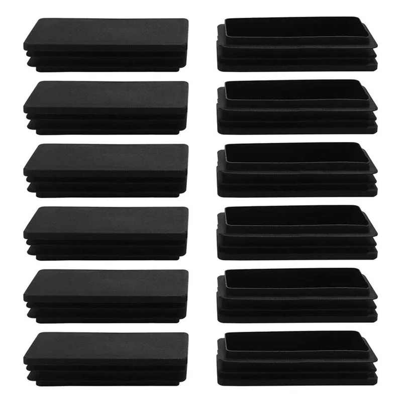 12pcs Plastic Rectangle Ribbed Tube Inserts End Cover Cap Furniture Glide Floor Protector