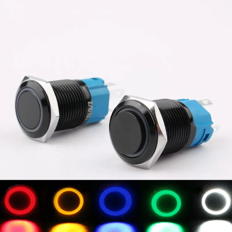 / 16mm Black Oxide Metal Push Button Switch with LED Light Self-locking/Self-reset Car/computer/doorbell 3V 6V 12V 24V 110V 220V
