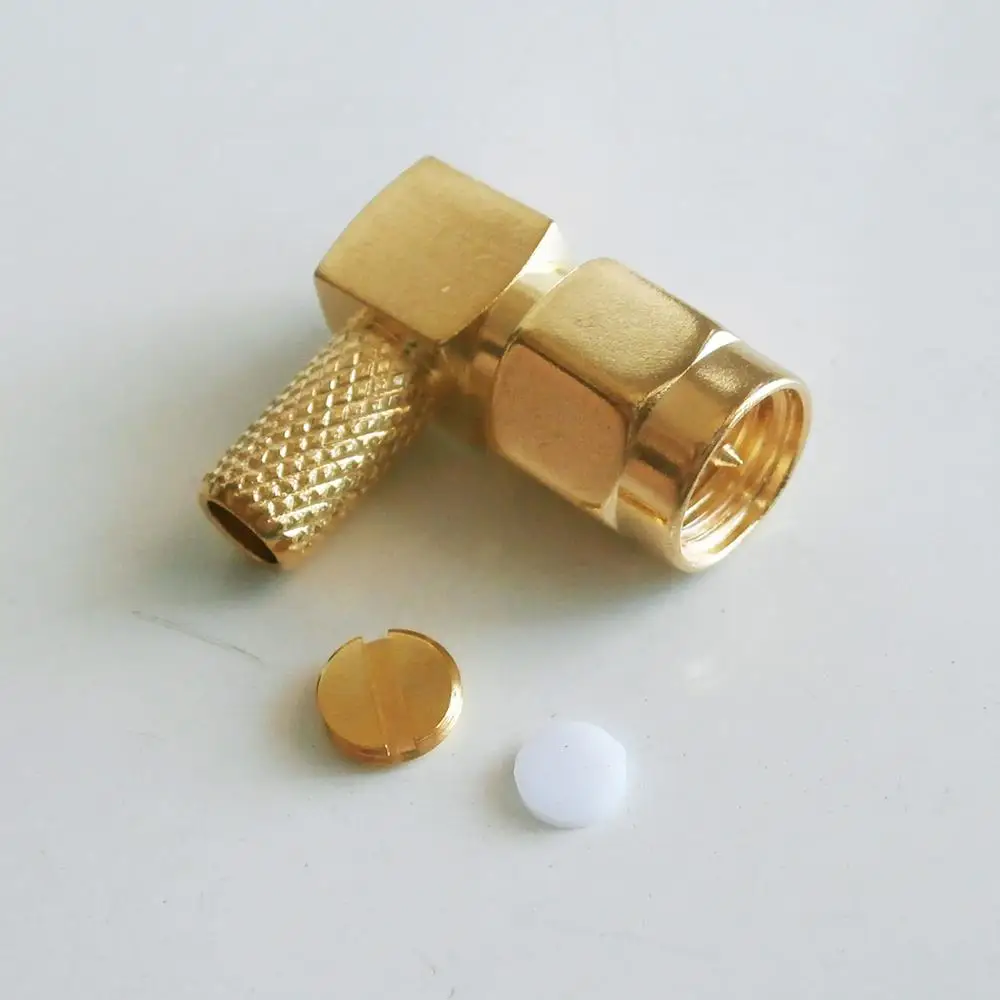 / 1X Pcs RF Connector SMA Male Jack 90 Degree Right Angle Crimp For RG58 RG142 RG223 RG400 LMR195 Cable Plug Brass GOLD Plated