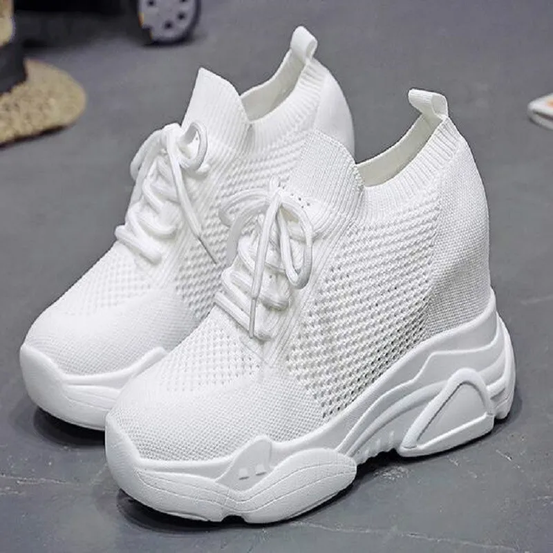 / 2020 Autumn High Platform High Heels Women Thick Sole Shoes Heels Wedge Sneakers Breathable Mesh Casual Shoes Woman