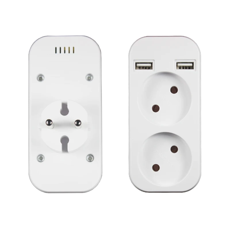 2020 EU Plug Power Strip Adapter Wall Double Socket Portable 2 USB Port for Mobile Phones 1200W 250V, for Smartphones Tablets