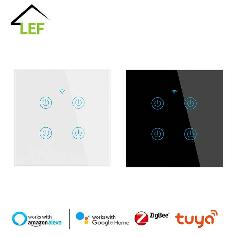 / 2020 New Tuya Smart Wifi Touch Switch EU Standard Wall Switch Neutral Line and Live Fire Wire (Universal) 1/2/3/4 Gang