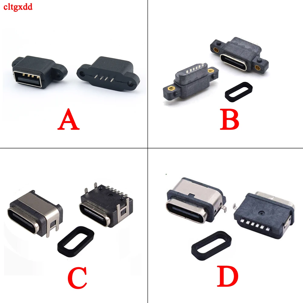 / 2Pcs Type c 3.1 USB 2.0 Female Jack 4P 6P 4 Feet Smd Inline Panel Waterproof Dwaterproof Water Diy Connector Repair