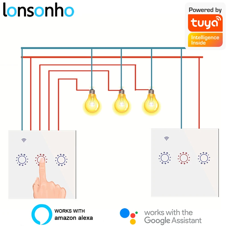 / 2PCS WiFi Smart 2 Way Switch 1 2 3 Gang Glass Wall Touch Switches Tuya or eWeLink Remote Control Alexa Google Home Compatible
