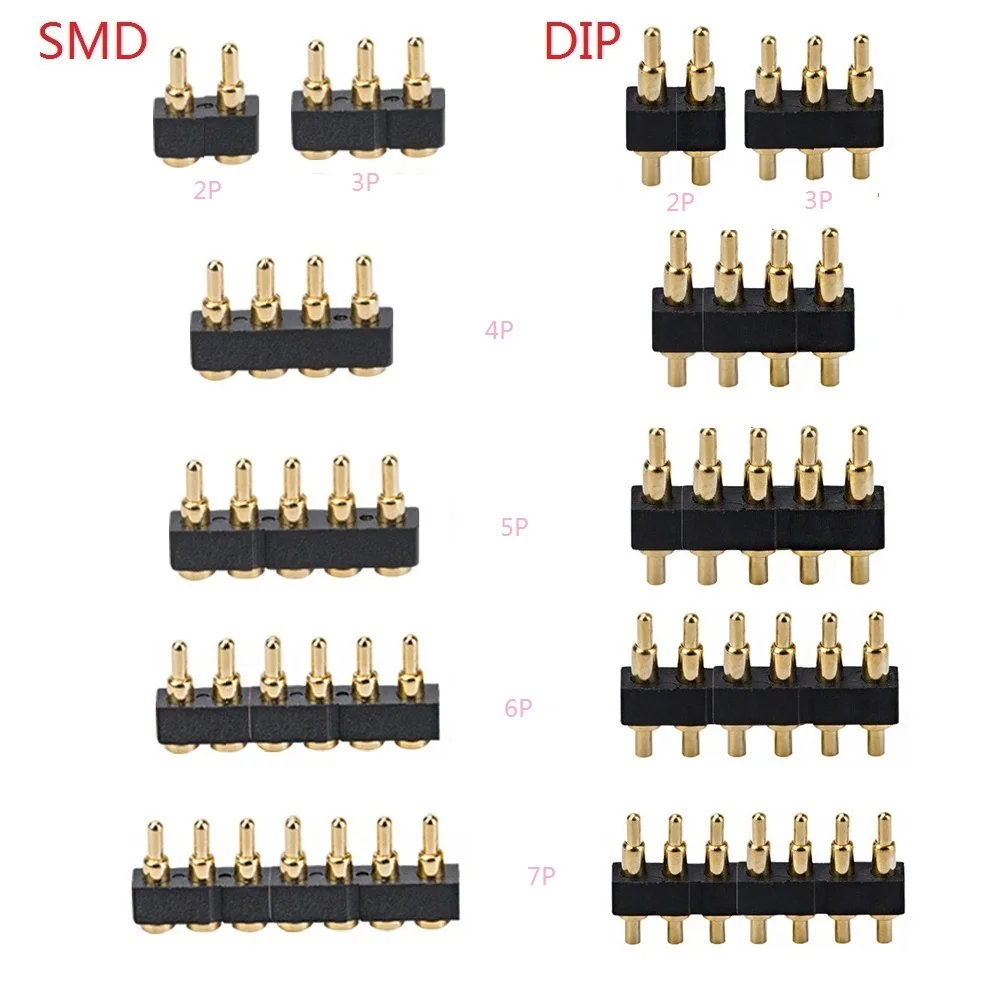 5 pcs SMD DIP Pogo pin connector Pogopin Battery Spring Loaded Contact Test Probe Power Charge Header Pins 2.54 Grid 7.0mm High