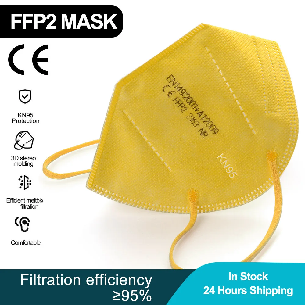 / 5PCS-100 PCS Yellow KN95 Masks FFP2 Mascarilla Dust Protective Face Mask KN95 Filter 5 Layer Safety Reusable ffp2mask Mondmasker