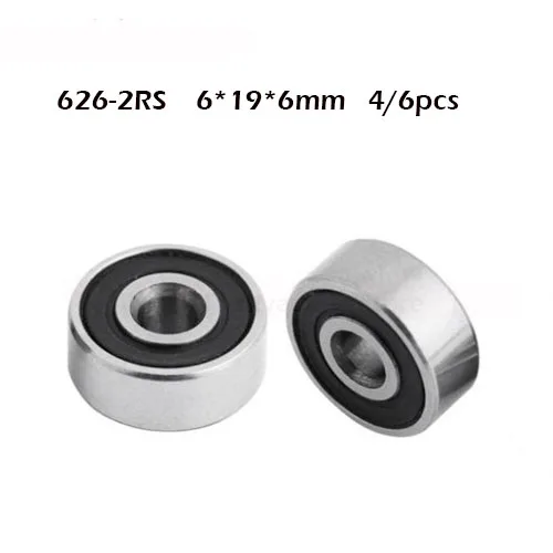 / 626RS Bearing ABEC-1 (4/6PCS) 6x19x6 mm Rubber Cover Sealed 626-2RS Ball Bearings 626 RS / 2RS