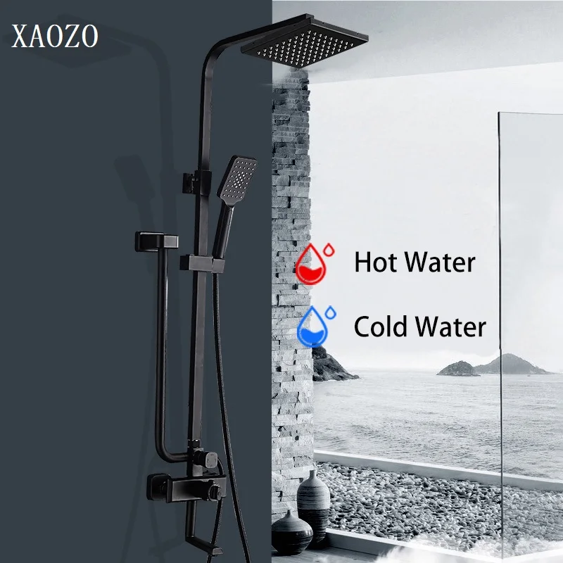 / Bathroom Black Themostatic Shower Sets intelligent thermostat Rain Head Bath Shower Mixer with Hand Shower Faucet Rainfall