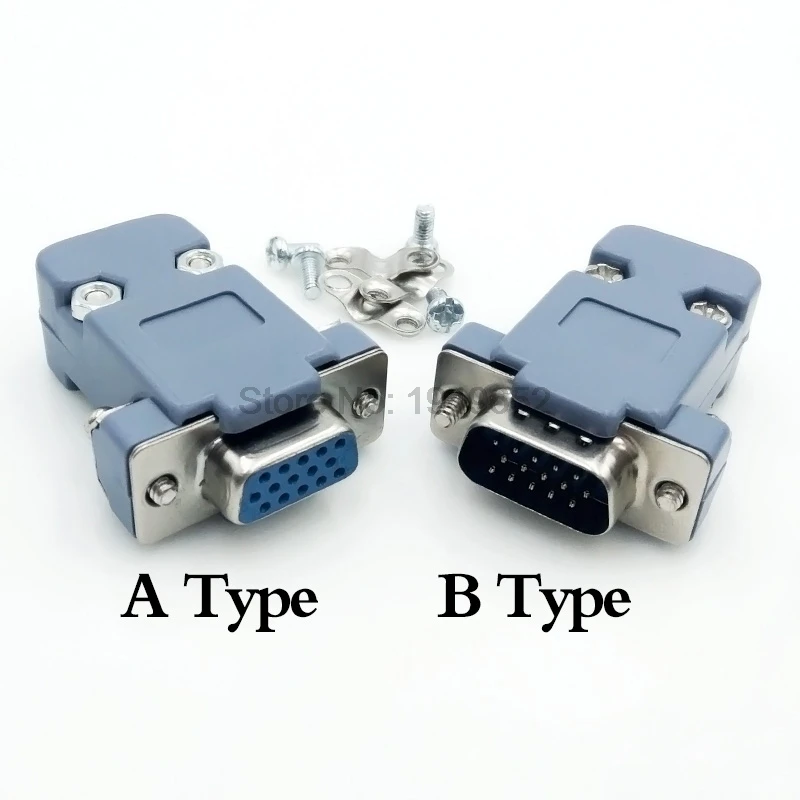 DB15 15 hole pin 3 rows Parallel VGA Port Adapter male female plug socket Solder Welded Connector+Plastic Shell Cover