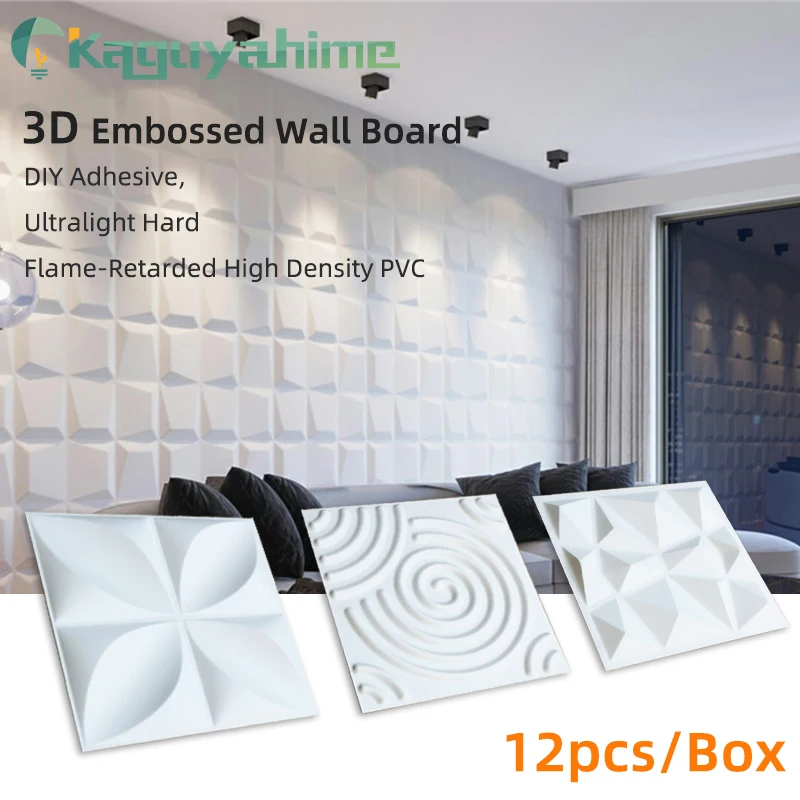 / Kaguyahime 3D DIY Adhesive Wall Board Embossed Wall Panel 12pcs Stereoscopic Wall Stickers Ultralight Hard PVC Board Decor Wall
