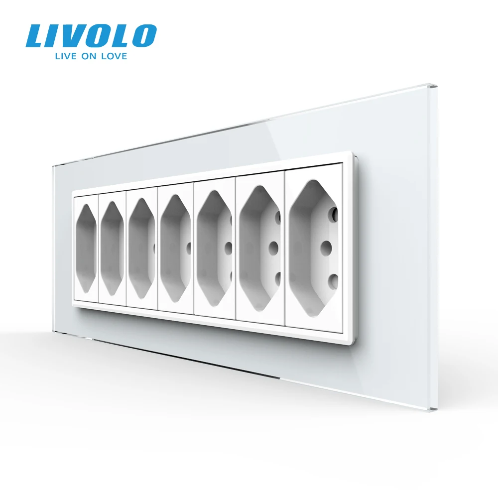 Livolo C9 USAU Standard 157.5mm Luxurious 7gang Socket With Pearl Crystal Glass ,Brazil socket,SATV,TV,COM,Tel,USB plugs