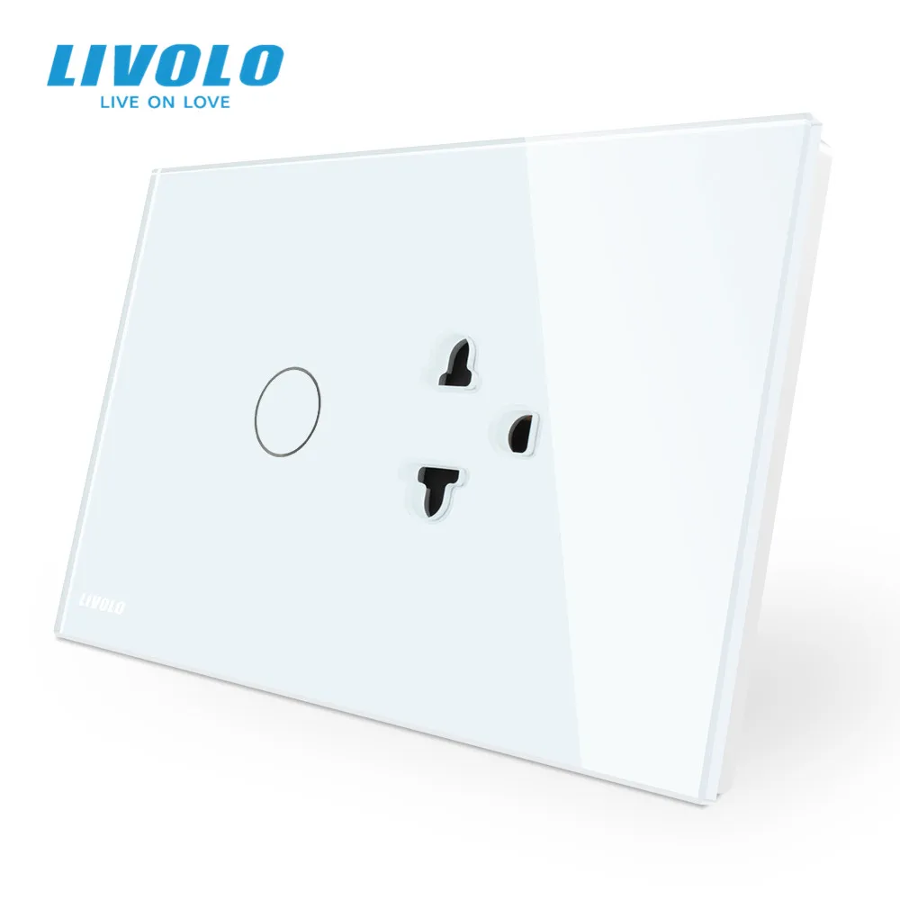 Livolo US AU Standard Touch Switch+US Socket, with White Crystal Glass Panel, US Touch Power Socket ,with led Indicator