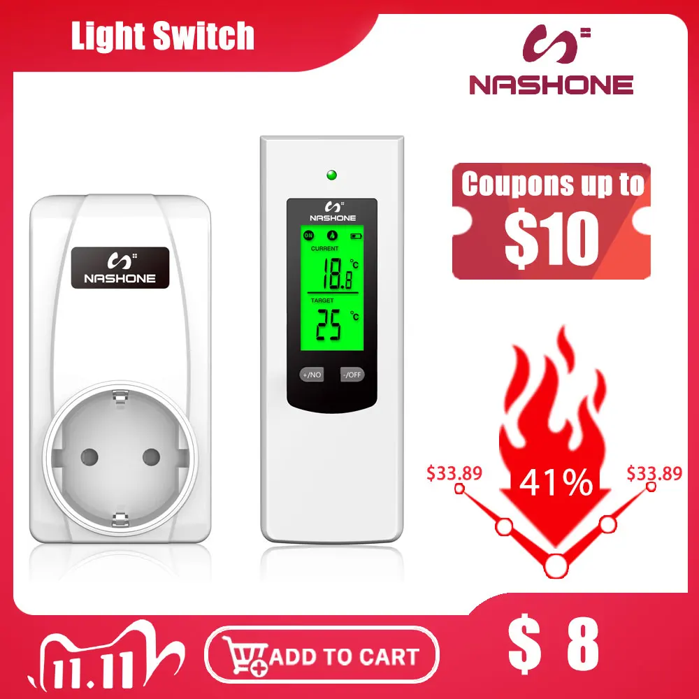/ Nashone Thermostat Digital Temperatur Control Wireless Thermostat 220V LCD Display Temperature Controller socket with thermostat