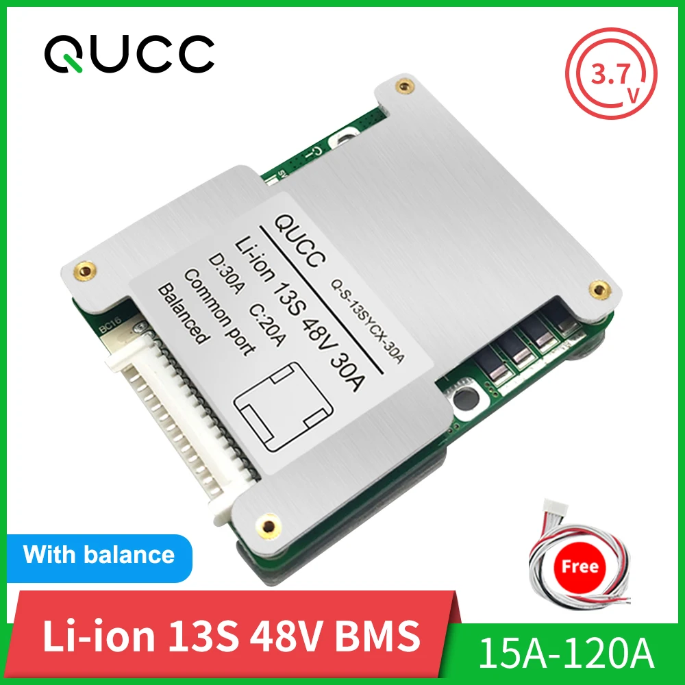 / Qucc BMS 13S 48V 15A 20A 30A 40A 50A 60A100A 120A 18650 Balancer PCB Lithium Battery Protection Board for Electric Vehicle Ebike