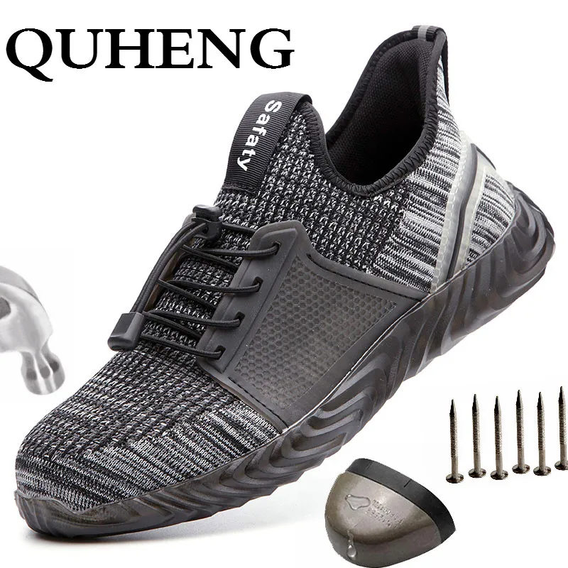 / QUHENG 2020 Men's Outdoor Mesh light Breathable Safety Sneakers Puncture-Proof Ultra-light soft bottom Anti-Static Free Shipping