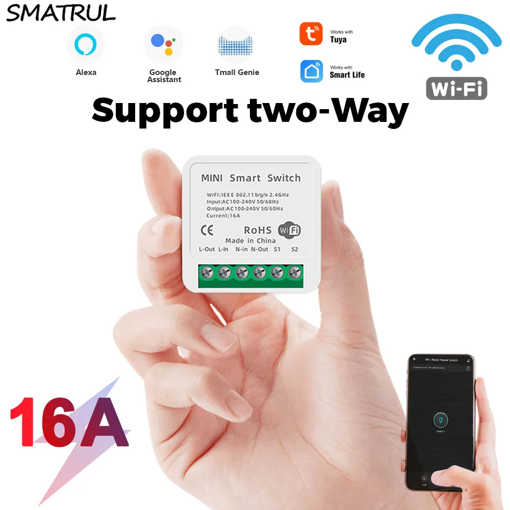 / SMATRUL 16A 10A MINI Diy Tuya WiFi Smart Life Push Switch Light Supports 2 Way Control Module APP Voice Relay Google Home Alexa