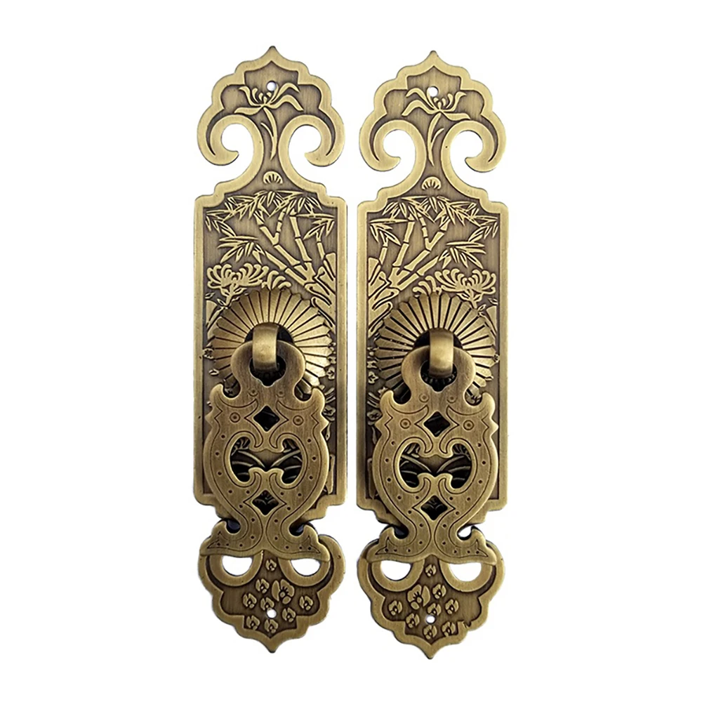 / Tiazza 2Pcs Vintage Style Embossing Pattern Pulls Handle Bookcase Wardrobe Drawer Window Pure Copper Double Door Handle