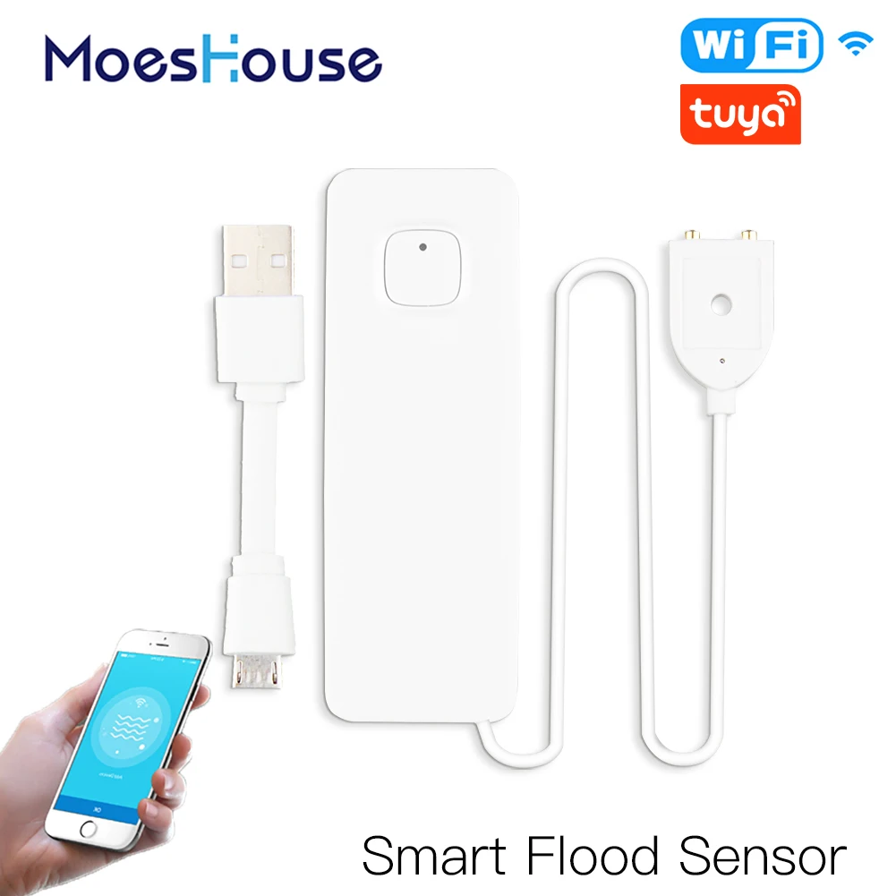 / WiFi Smart Flood Sensor Water Leakage Detector Flood Overflow Alert Security Alarm System Tuya/Smart Life App Remote Control