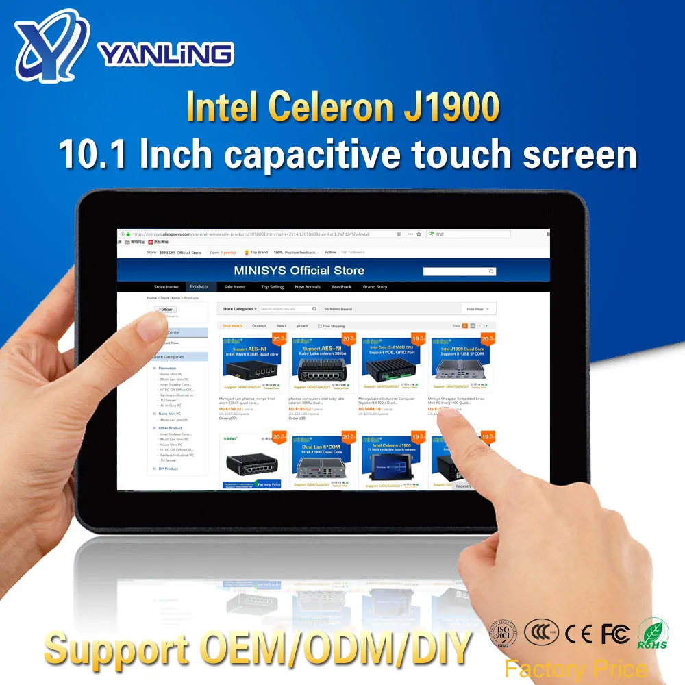 / Yanling Rugged Industrial Tablet PC Intel J1900 2 Lan Desktop All in one Computer 10.1” Capacitive Touch Screen For Windows 10