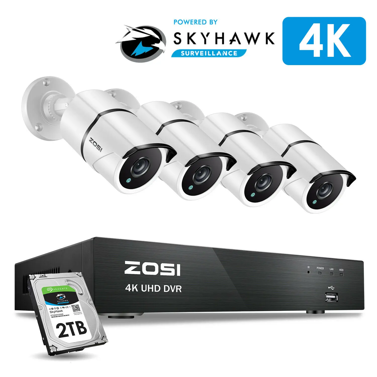 / ZOSI 4K Super HD Video Surveillance System 8 Channel H.265+ DVR with 2TB HDD and 4 x 4K(8MP) Ip67 Bullet Weatherproof Cameras